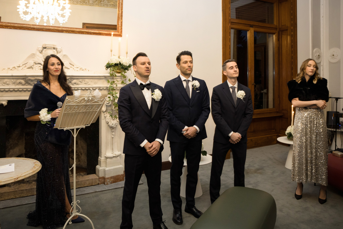 L’atmosfera autunnale ha reso tutto ancora più magico: tonalità calde, luce morbida e riflessi dorati sul lago hanno accompagnato ogni momento, creando un contesto perfetto per un destination wedding esclusivo. Gli sposi, circondati da amici e familiari arrivati da diverse parti del mondo, hanno vissuto una giornata ricca di sorrisi, emozioni vere e dettagli curati con gusto impeccabile.